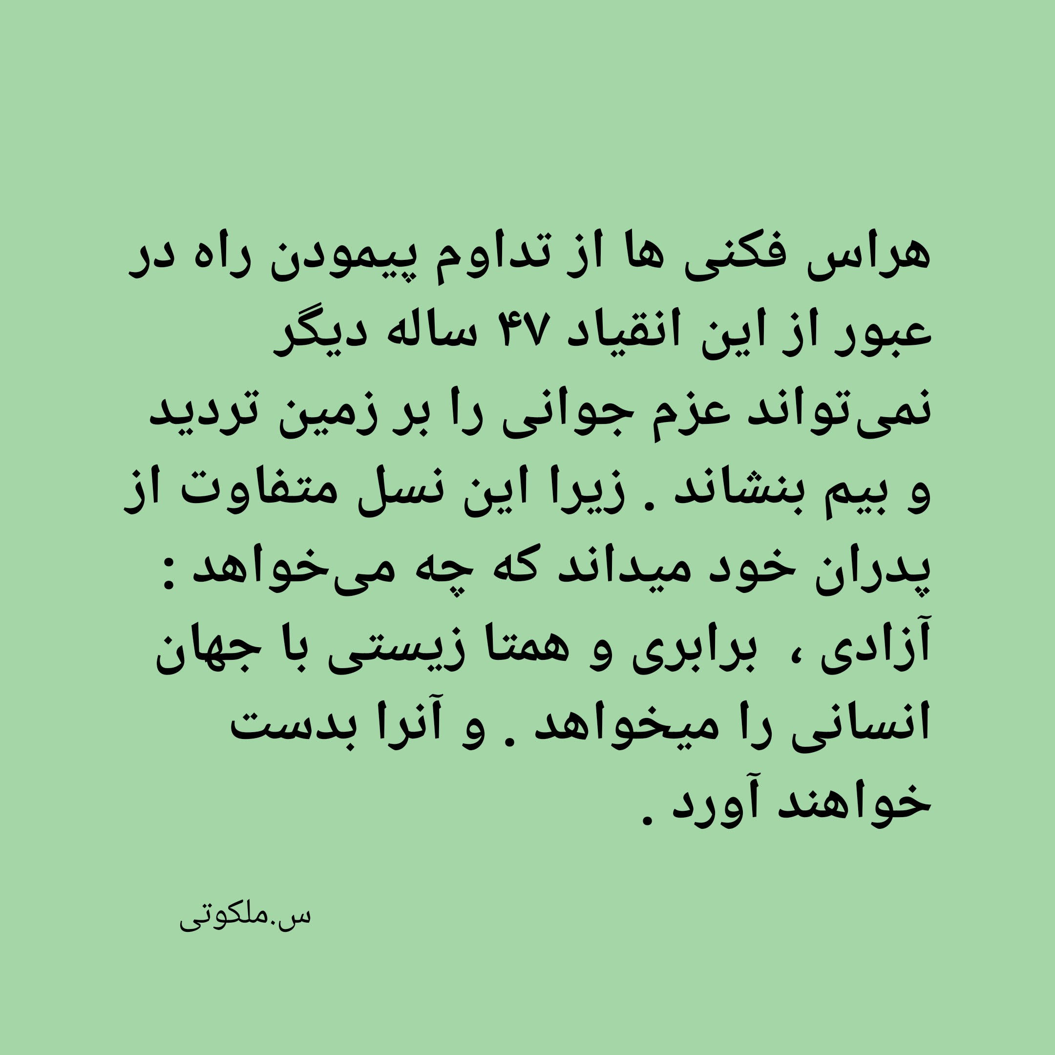 در واقع در عمل همان پیام حکومت دارد بازآفرینی میشود، که باور دارد این مردم خود توان تشخیص، انتخاب و ساختن بدیل مشترک را ندارند و باید تنها به یک نیروی خاص تکیه کنند . نتیجه، چیزی جز تداوم بیاعتمادی عمومی و تعلیق نقش واقعی جامعه در تعیین سرنوشت نخواهد انجامید.